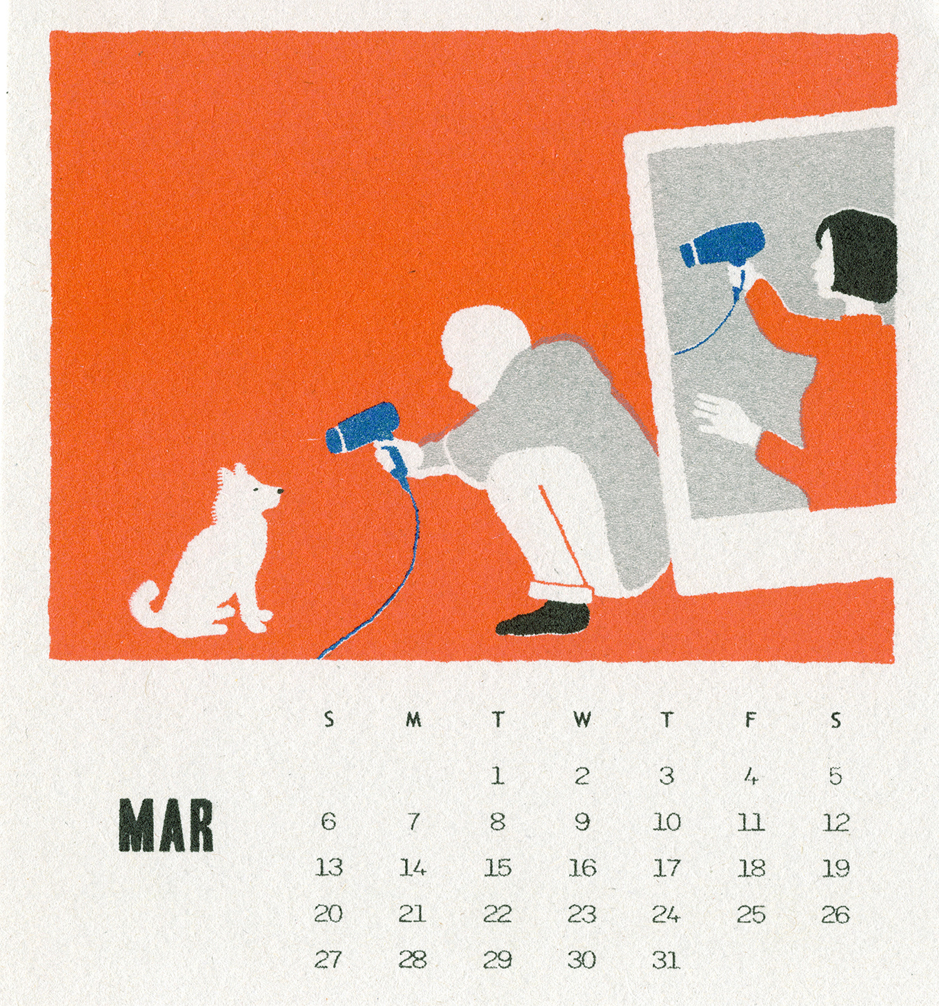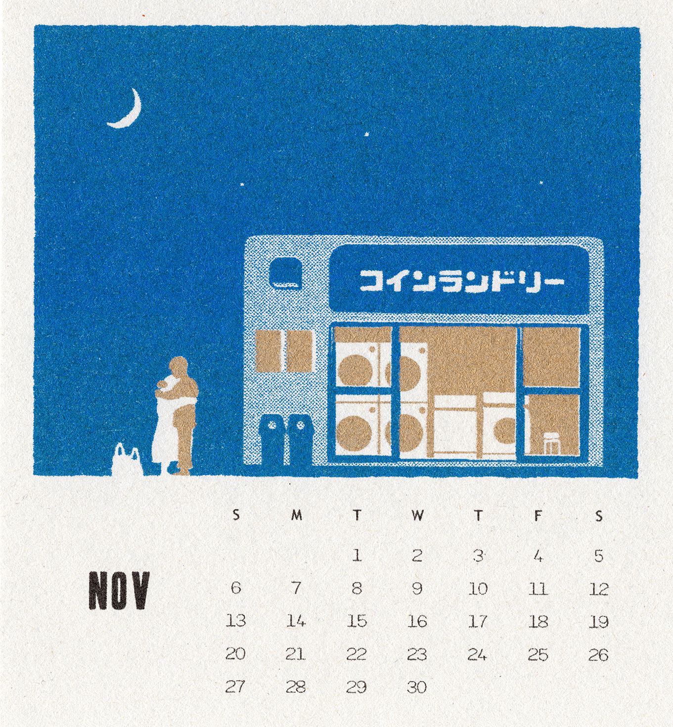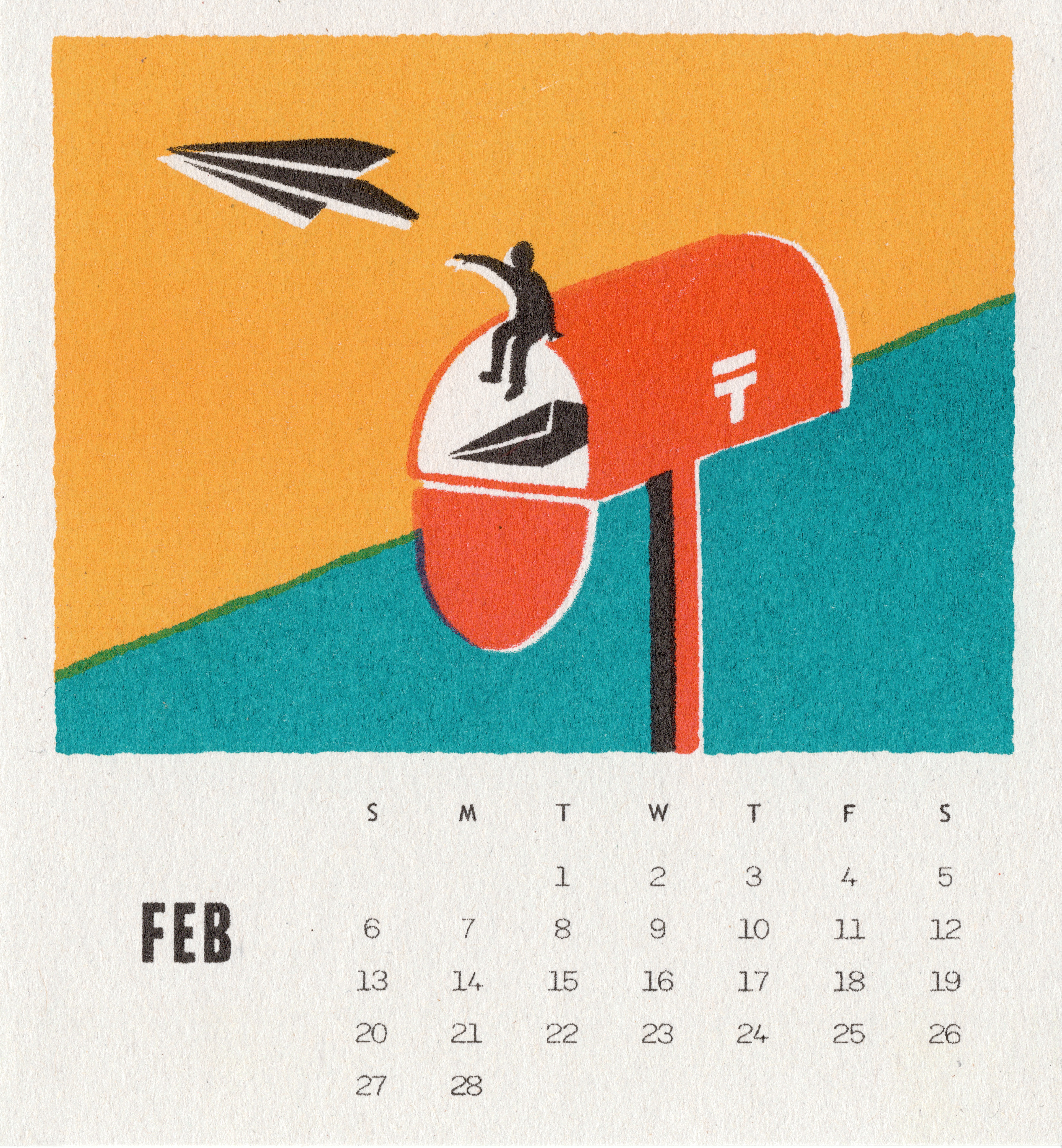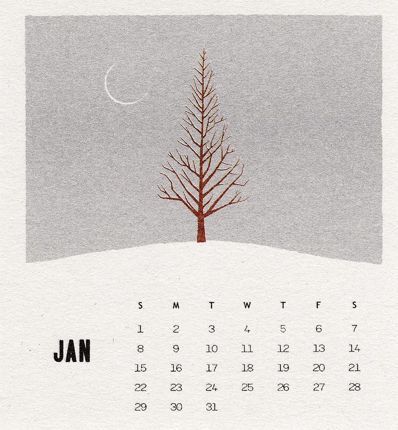 2022年 "2月始まり" のカレンダー。その後メインの出力手法となるリソグラフを用いた最初の作品。