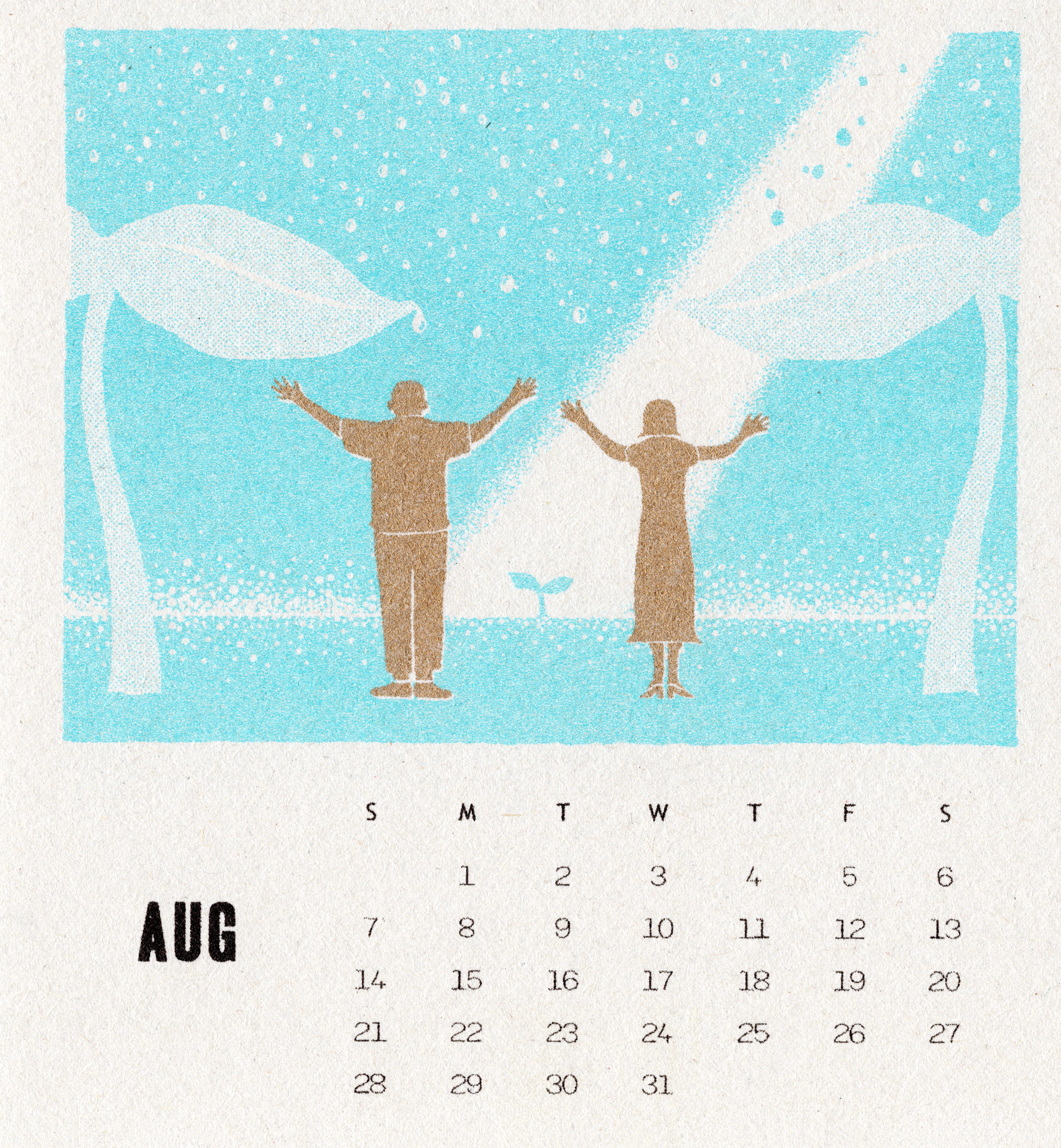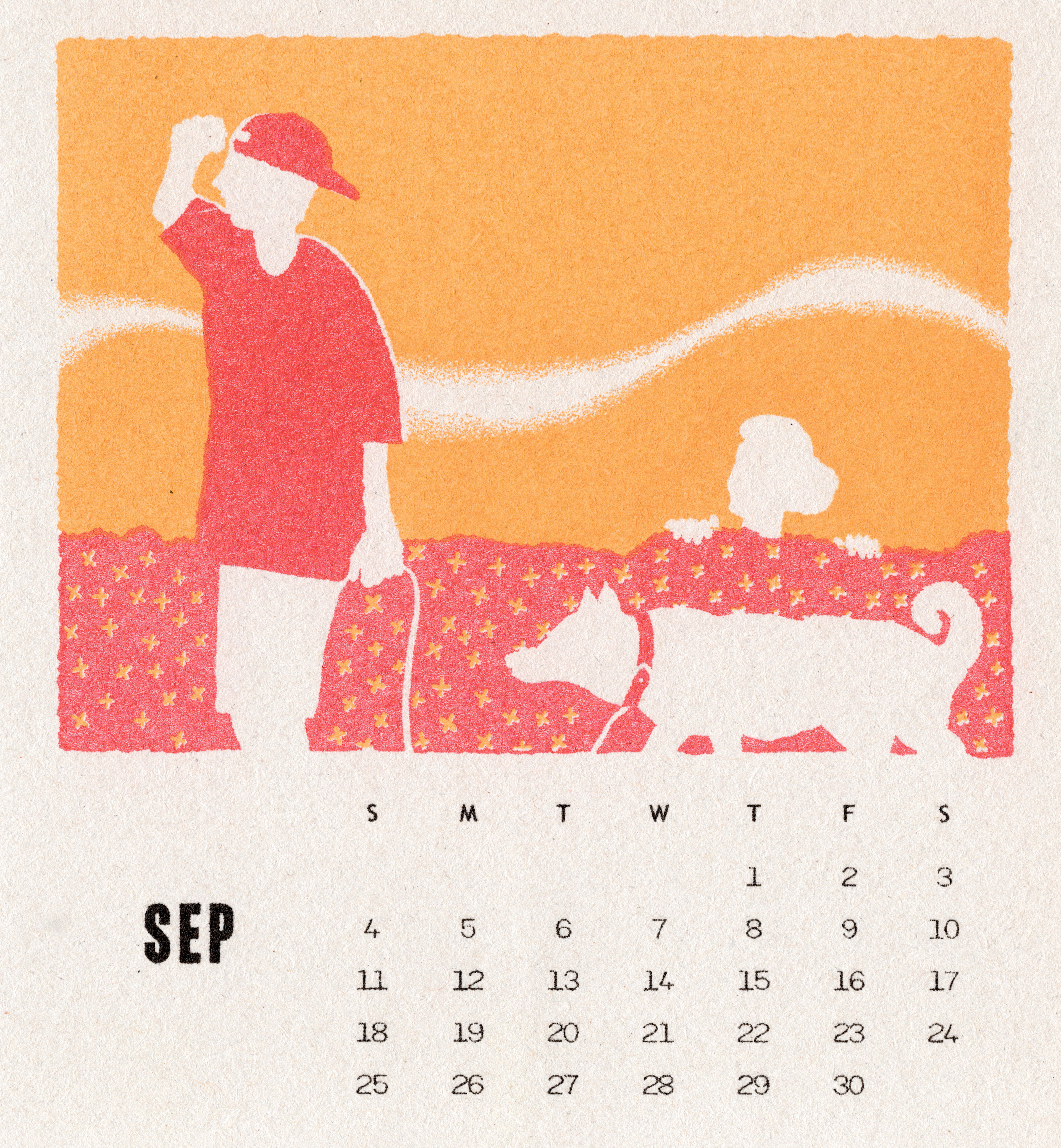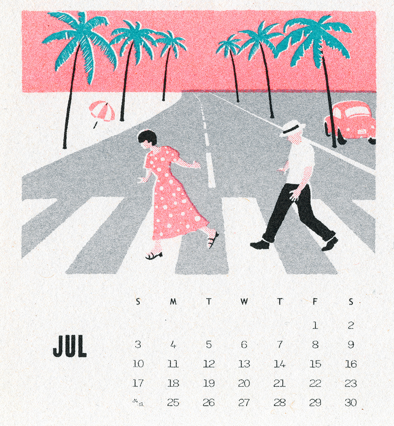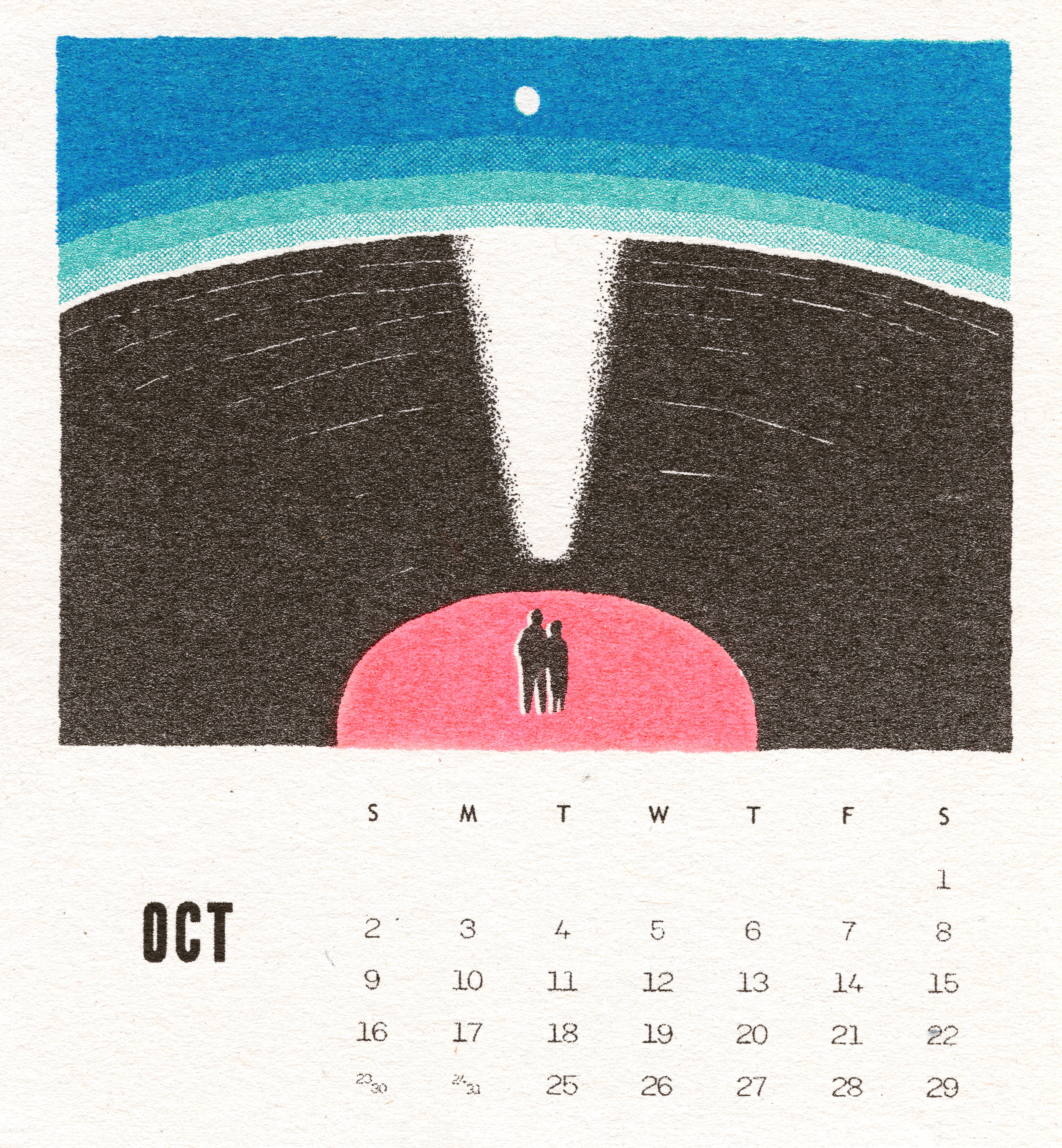 2022年 "2月始まり" のカレンダー。その後メインの出力手法となるリソグラフを用いた最初の作品。
