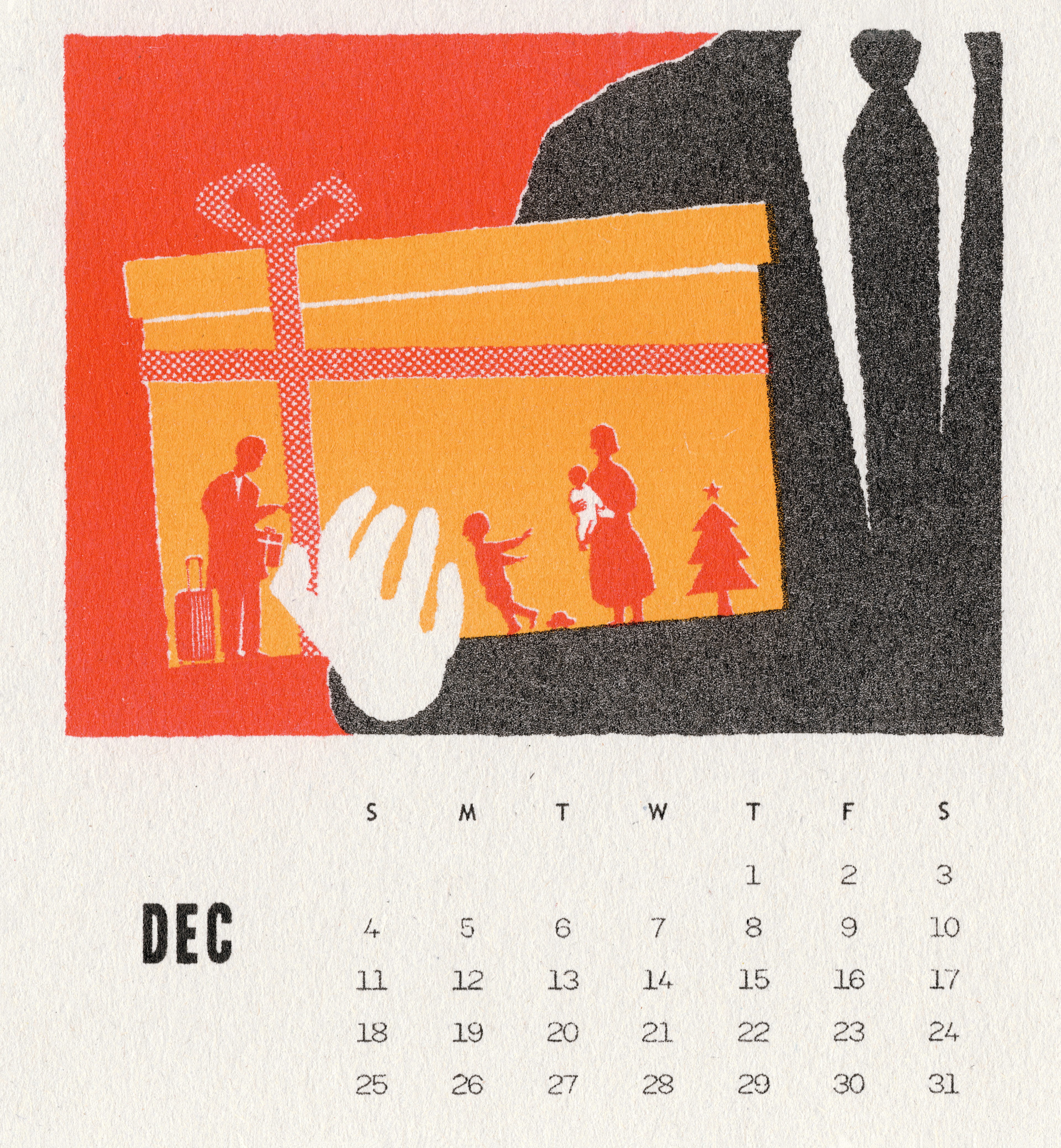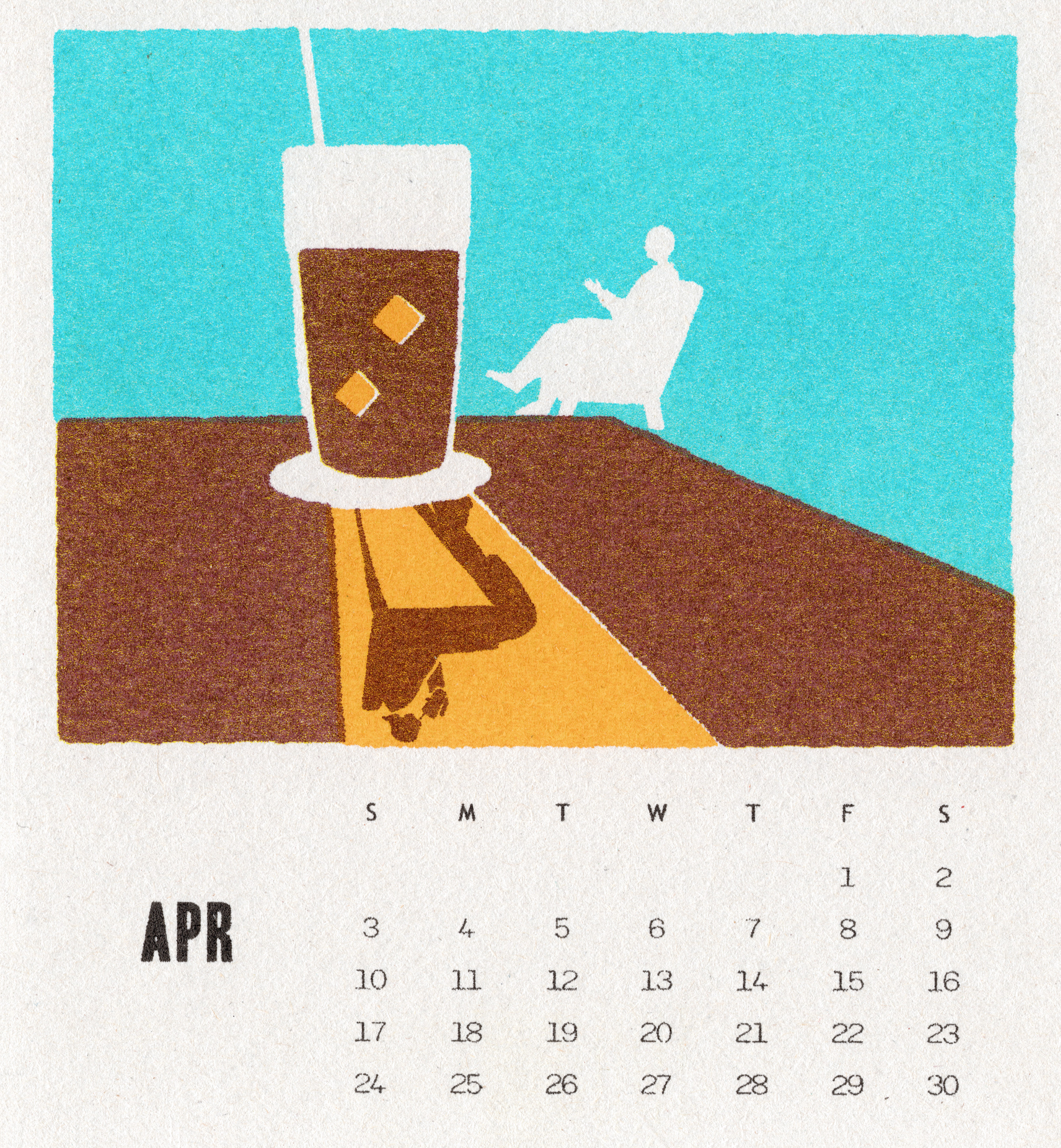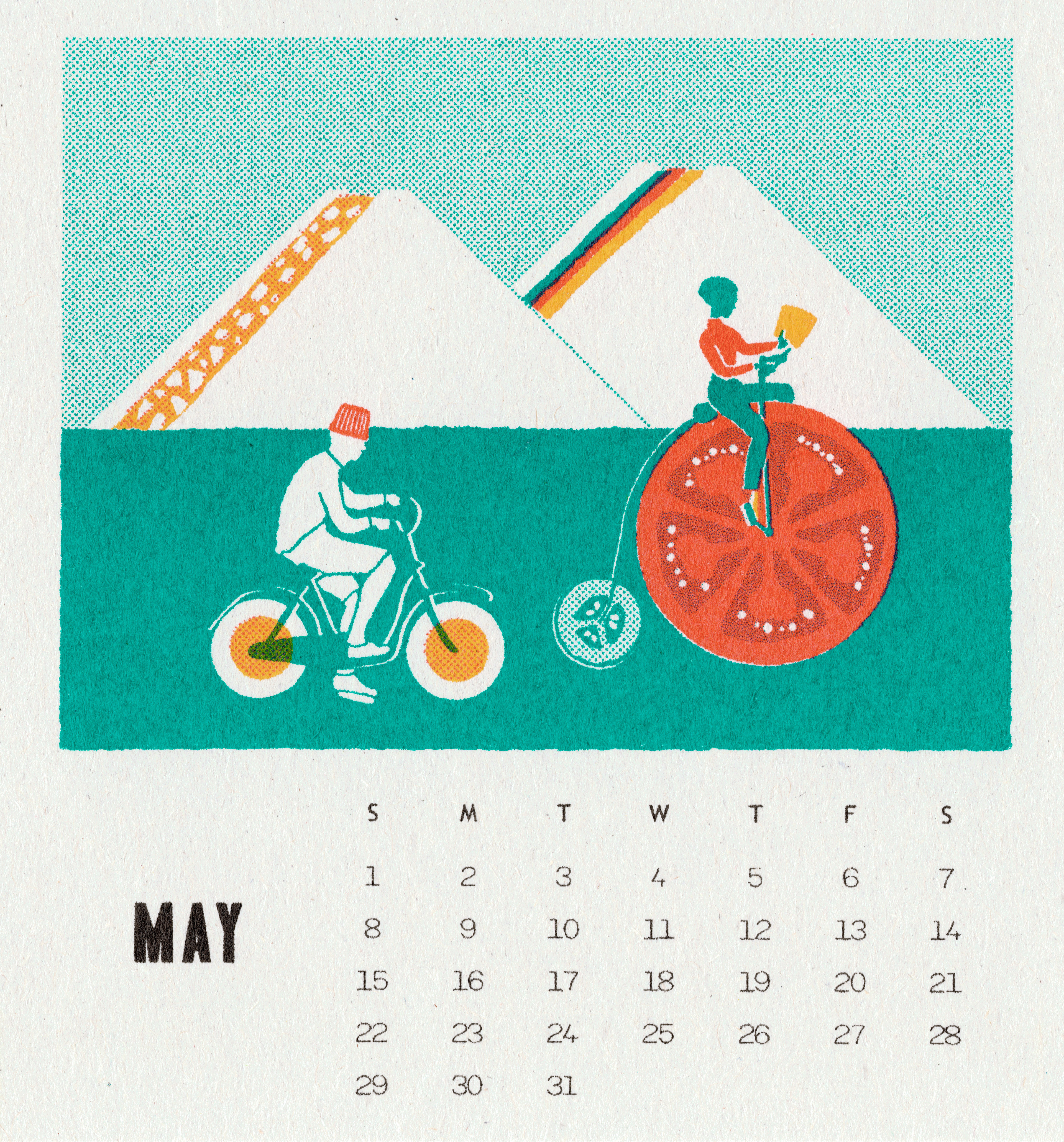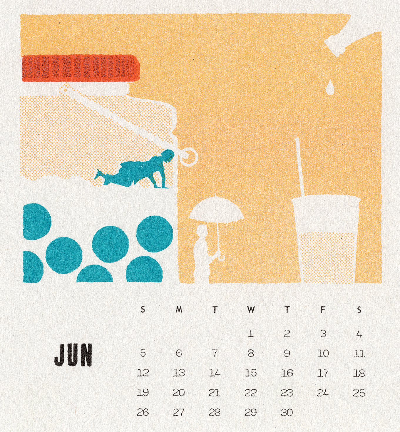 2022年 "2月始まり" のカレンダー。その後メインの出力手法となるリソグラフを用いた最初の作品。